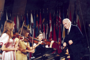 El Maestro Yehudi Menuhin con su Majestad, la reina Dª. Sofía