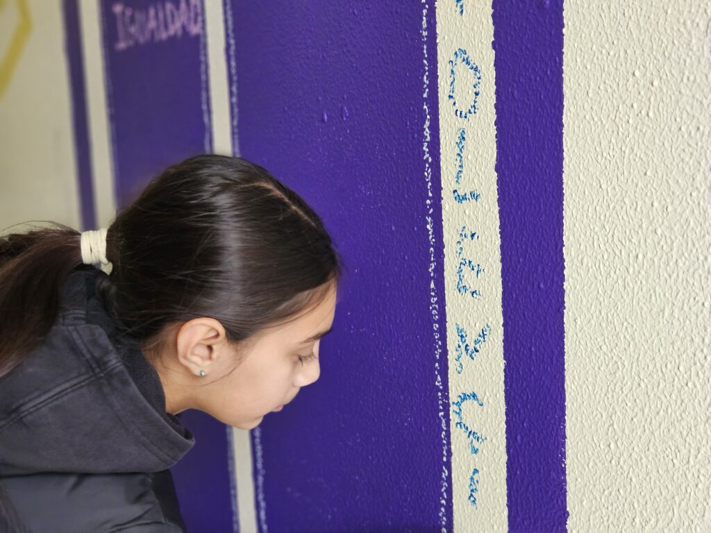 Como ya comentábamos en una noticia anterior, en el CEIP Virgen de las Mareas, en Asturias, había comenzado el proceso de creación de un mural colectivo para conmemorar el 25N de la mano de la artista de artes plásticas Blanca Dacal. En esta ocasión, ese trabajo ha continuado y se ha ampliado a través de una propuesta artística que ha unido creación plástica, palabra y música, reforzando el mensaje de respeto e igualdad desde una experiencia compartida.