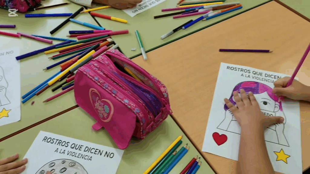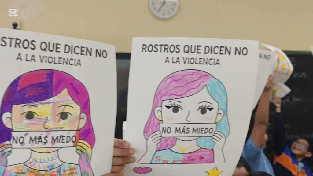 Durante la sesión, los niños y niñas trabajaron sobre un rostro en blanco, un símbolo de todas aquellas personas que, a veces, guardan silencio ante situaciones que les hacen daño. A partir de esta idea, cada estudiante decoró su rostro añadiendo mensajes de apoyo, respeto y valentía, como “No estás sola”, “Merezco ser tratado bien” o “Todos tenemos derechos”. Las creaciones fueron reunidas en un mural conjunto, formando una galería de voces que transmiten un mensaje poderoso: todas las personas merecen vivir sin miedo y la violencia jamás debe normalizarse.