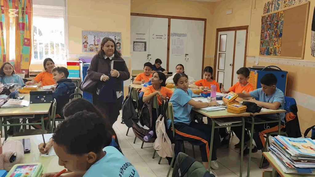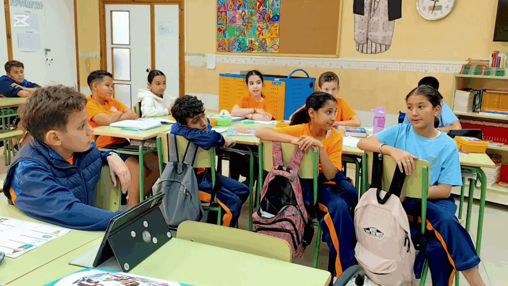 A través de la representación teatral «La Mochila Violeta», niños y niñas trabajaron valores como el respeto, la igualdad, la importancia de pedir ayuda y de reconocer las señales de un trato injusto o desigual. La obra, interpretada en el aula, mostró diferentes objetos simbólicos, como un silbato, un corazón o una cinta violeta, que ayudaron al grupo a reflexionar sobre cómo construir relaciones sanas, libres de celos y control.