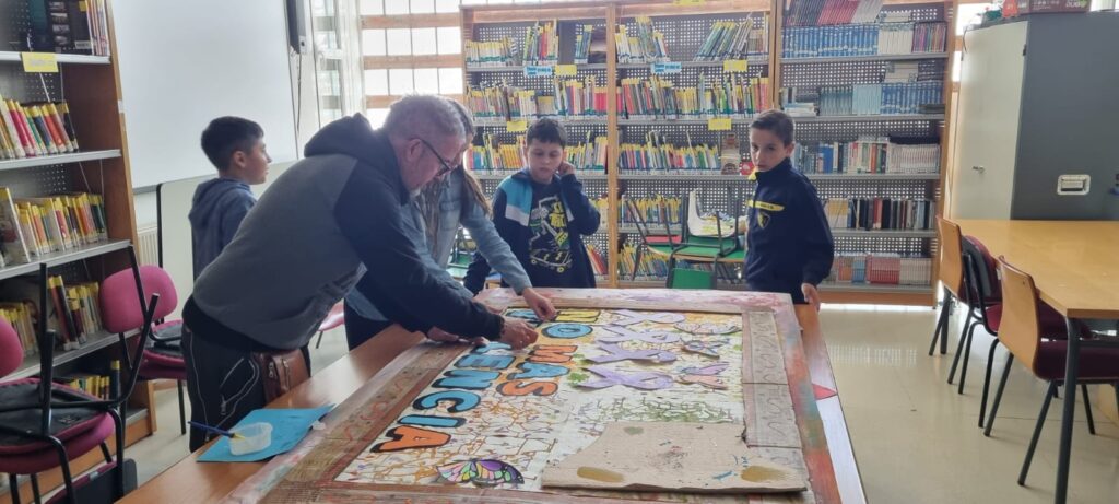Se ha iniciado el trabajo desde lo individual, reflexionando y trabajando en contenidos vinculados al género y a la diversidad para poner en común la riqueza que todo esto aporta. Al final y entre todos, se ha construido un mural colectivo en contra de la violencia, porque el grupo nos fortalece y hace fuertes.