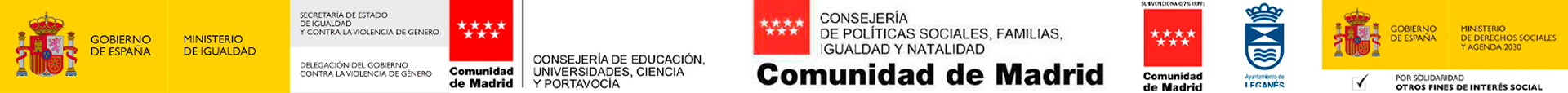 Esas actividades han sido posible gracias al Ministerio de Igualdad, a la Consejería de Educación, Universidades, Ciencia y Portavocía de la Comunidad de Madrid, la Consejería de Políticas Sociales, Familias, Igualdad y Natalidad de la Comunidad de Madrid, al Ayuntamiento de Leganés y el Ministerio de Derechos Sociales y Agenda 2030 a través de su convocatoria del 0,7%.