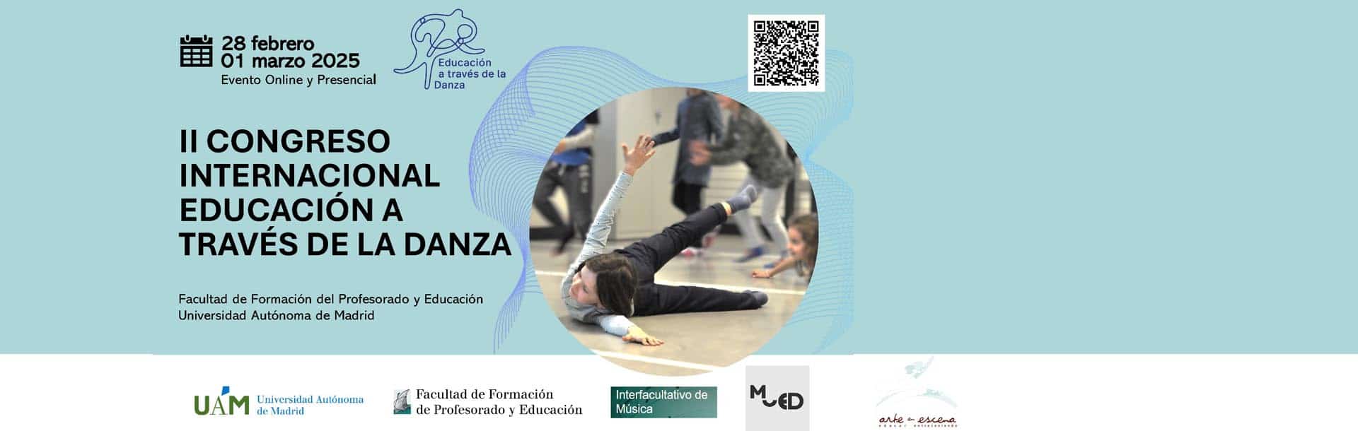 Nos es muy grato anunciaros la celebración del II Congreso Internacional Educación a través de la Danza, organizado desde el Grupo de Investigación Música y Educación (MUED) del Departamento de Música de la Facultad de Formación de Profesorado y Educación (Universidad Autónoma de Madrid). Nuestro propósito es favorecer un espacio de encuentro e intercambio para todas las personas interesadas en el desarrollo y la didáctica de la danza en ámbitos educativos, sociales y comunitarios.