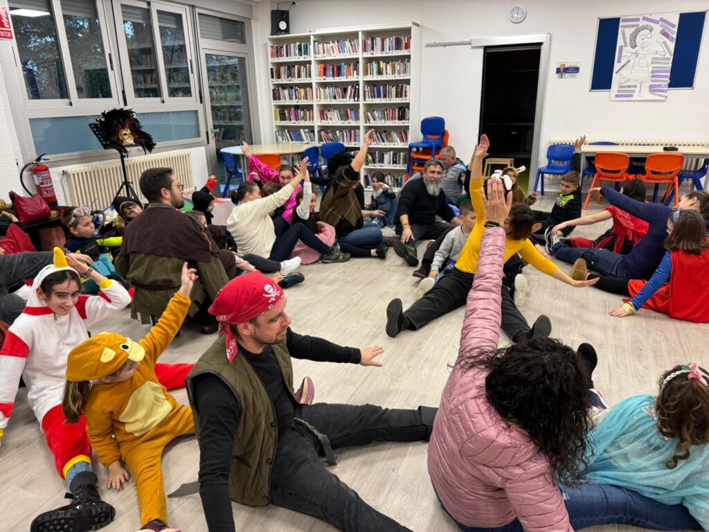 Acudieron a este encuentro muchas familias, algunas con disfraces y otras vestidas de calle. Además de ir dispuestos a pasar un buen momento con sus hijos e hijas, también llevaron comida para compartir después de la actividad y claro, no faltaron filloas rellenas (un dulce típico de Galicia en esta época del año).