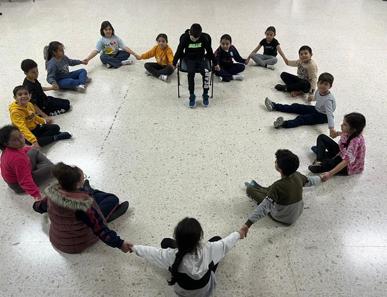 Entre las realizadas por los niños y niñas de 3º de primaria, una de ellas ha sido una actividad por parejas en las que, con las indicaciones oportunas, debían colocarse para hacer figuras desde diferentes ángulos como círculos, cuadrados, corazones… «Esta actividad tenía como objetivo el trabajo en equipo y la colaboración entre iguales, de manera que puedan ver que si trabajan juntos, pueden lograr cosas», comentan desde el centro.