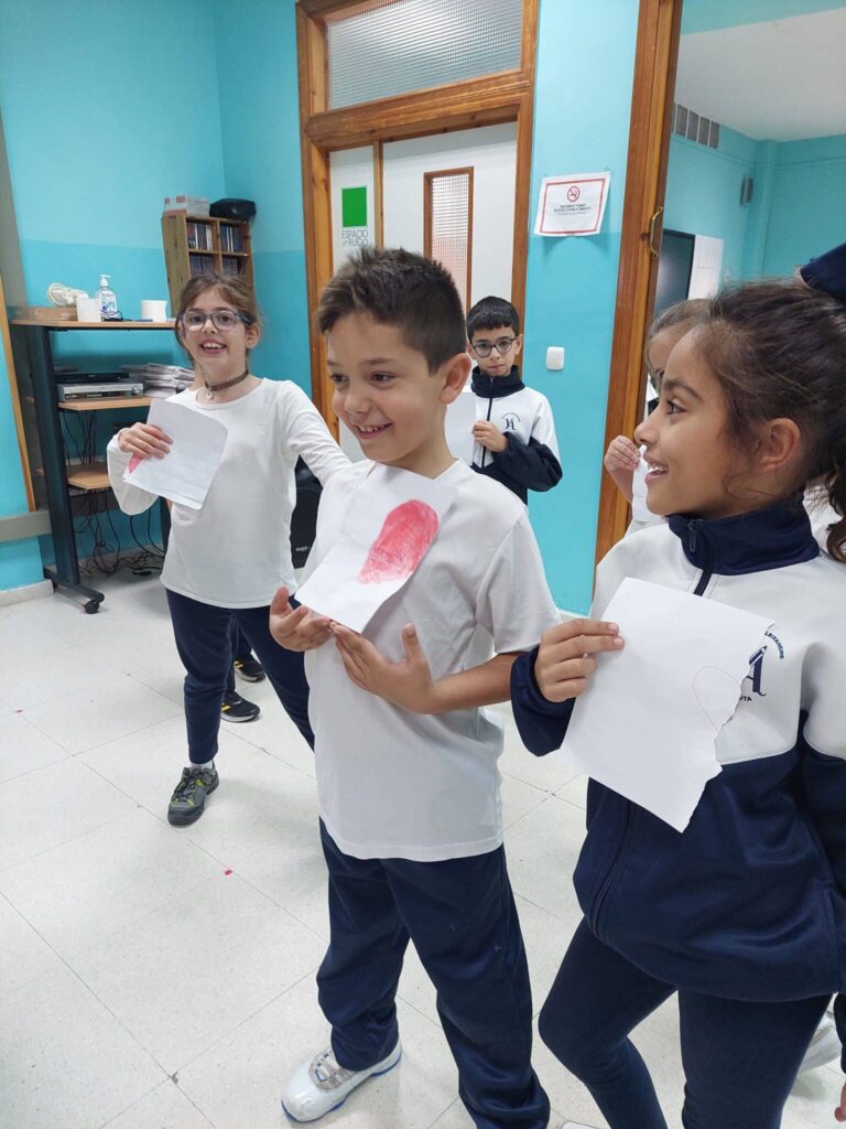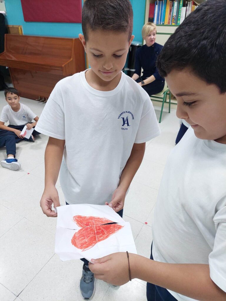 El objetivo era conocerse mejor a través de buscar nuestra mitad del corazón. Después de pintar corazones entre dos, deberán encontrar la mitad que encaje perfectamente con la suya. Una vez que se encuentran estarán durante unos minutos charlando para descubrir cosas del compañero que no sabían y después en una asamblea pondremos en valor las cualidades de cada uno de ellos.