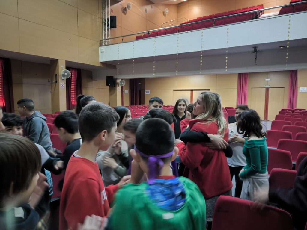 Para terminar, les tenía preparada una sorpresa, una mujer muy importante para ellos venía a visitarlos, una mujer que les había acompañado desde muy pequeñitos y que ha sido su apoyo en innumerables momentos. Ya que este grupo proviene de un centro MUS-E dónde ya había trabajado anteriormente, pedí a su tutora de toda la primaria que viniera a visitarlos al final de la sesión, aprovechando la cercanía de los centros, y para poner en valor esta figura con motivo del 8M.