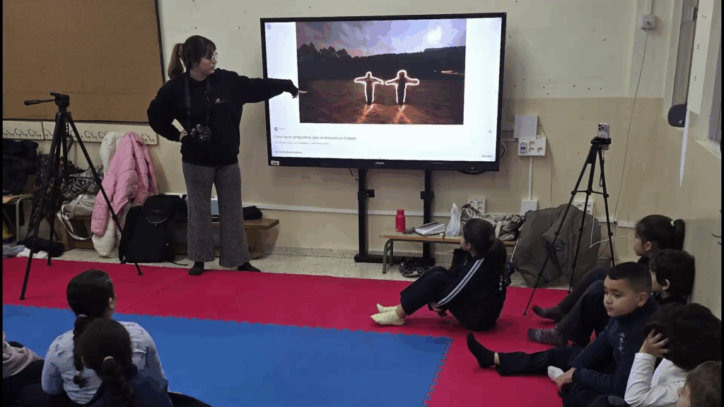La propuesta se articuló principalmente a través de acciones de yoga y lightpainting, lenguajes que no necesitan palabras para transmitir mensajes. A partir del movimiento consciente, la respiración y el gesto, niños y niñas exploraron el cuerpo como herramienta de expresión y escucha. El yoga permitió trabajar la atención, la calma y la conexión con uno mismo y con los demás, generando un espacio compartido donde el respeto se construye desde lo corporal.