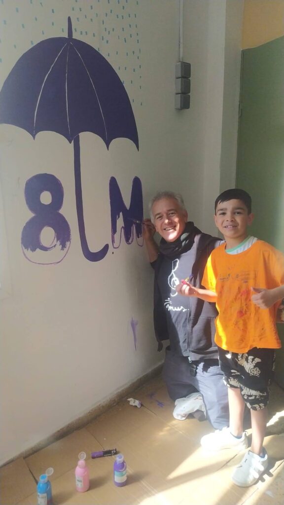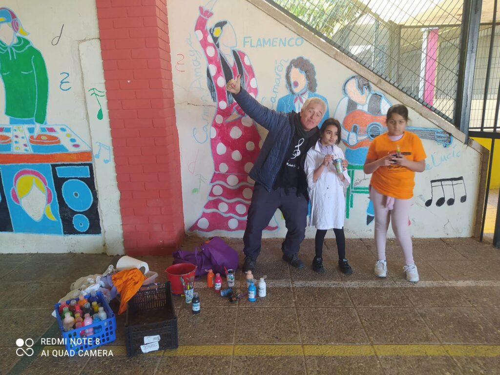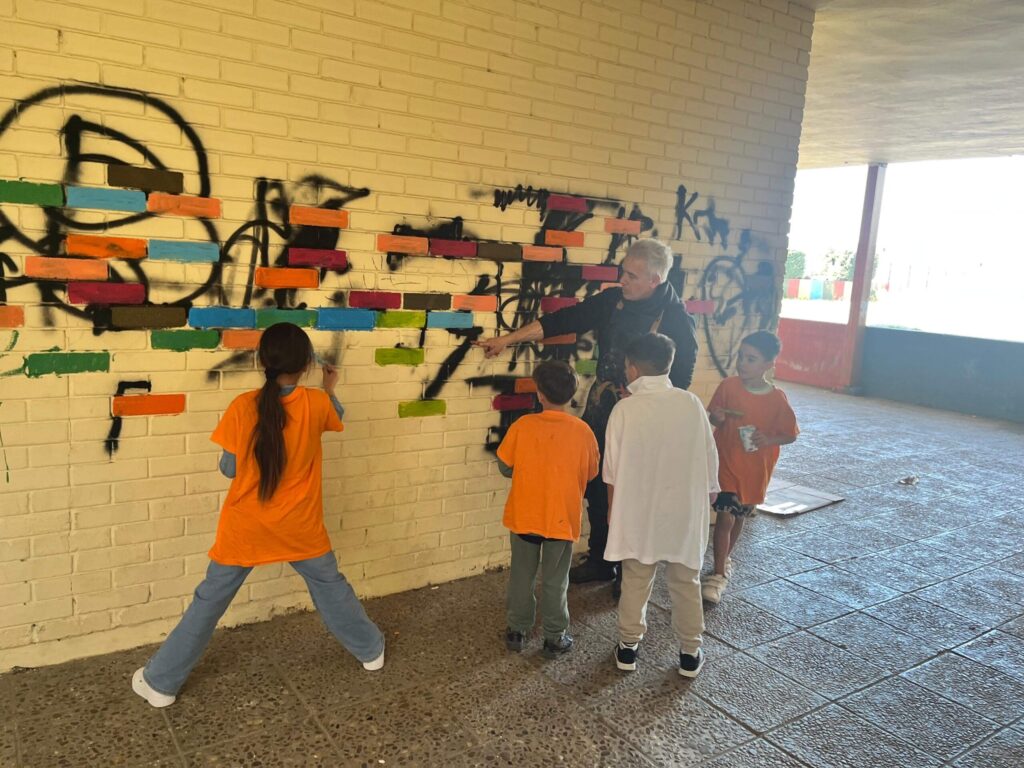 En el CEIP Santa Engracia de Badajoz, el trabajo plástico sigue creciendo a partir de procesos que se enlazan unos con otros y que van dejando huella en distintos espacios del centro. Tras las creaciones realizadas para la celebración del 8M, entre ellas un mural en el que aparecen un paraguas y la lluvia, el trabajo junto a José Manuel Gamero Gil, artista de artes plásticas, ha continuado con nuevas intervenciones vinculadas al Día del Centro y con el inicio de otros murales destinados a diferentes zonas del colegio.