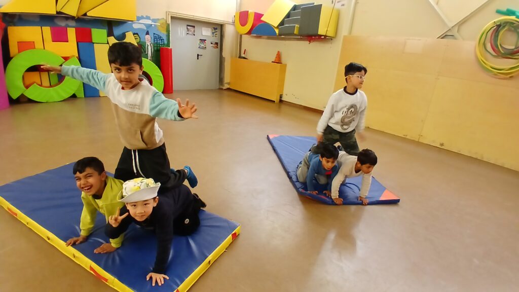 Este año estoy realizando las sesiones con alumnos de 1º. La mayor dificultad es la comunicación porque hay muchos alumnos que no hablan catalán y les cuesta entender las indicaciones, pero con paciencia y buena actitud conseguimos comunicarnos. El circo es un nuevo lenguaje, una invitación al juego, y ahí siempre encontramos a niños y niñas dispuestos a participar activamente. En estas primeras sesiones hemos presentado diferentes técnicas de circo a través de juegos de equipo y conocimiento personal.