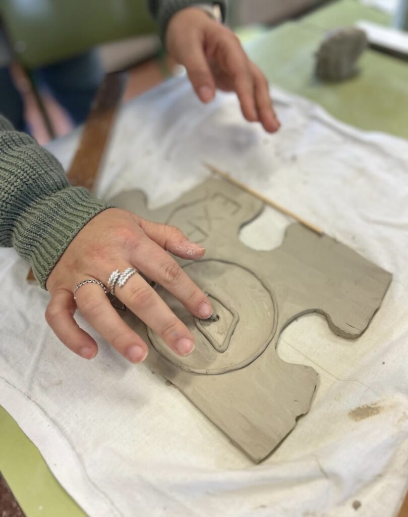 Durante algunas de las sesiones MUS-E de este año nuestro alumnado ha creado increíbles piezas de puzzle de cerámica para el espacio Aula del Futuro, de la mano de la artista Beatriz Muñoz.