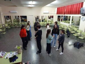 En el IES Reino Aftasí de Badajoz, en Extremadura, el trabajo desarrollado junto a María Bris ha puesto el foco en la improvisación como herramienta artística y educativa. A partir de distintas dinámicas escénicas, los chicos y chicas han ensayado formas de estar en escena, reaccionar ante lo inesperado y construir propuestas colectivas desde la escucha y la acción compartida.