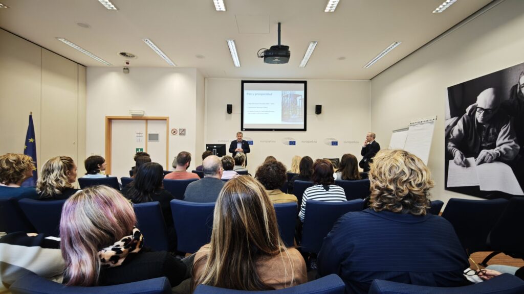 Durante la jornada del 12 de noviembre, el grupo fue recibido en el Parlamento Europeo por Javier Moreno Sánchez, eurodiputado anfitrión del encuentro, y por responsables del Servicio de Visitas y Seminarios. Allí, los participantes asistieron a una charla-coloquio sobre el funcionamiento del Parlamento Europeo y, posteriormente, realizaron una visita obligatoria al Parlamentarium y a la Casa de Europa. Esta parte del programa permitió no solo conocer el trabajo legislativo de la institución, sino también reflexionar sobre la importancia de la participación activa en la construcción europea desde la ciudadanía.