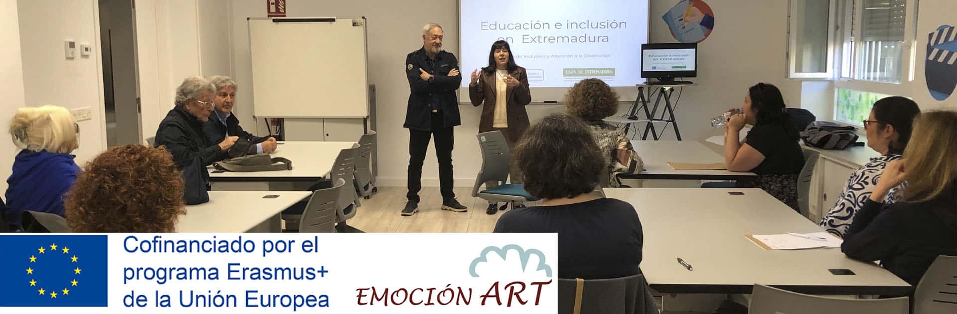 Así, el grupo EmocionArte se reunió el pasado 12 de abril en el Centro de Formación del Profesorado de Badajoz para conocer las experiencias de inclusión que se llevan a cabo en Extremadura. Sonia Barrás de la Consejería de Educación de Extremadura presentó a los socios EmocionArte los proyectos educativos y de inclusión que se están desarrollando en Extremadura y las experiencias internacionales en las que participan, destacando los excelentes resultados del proyecto EmocionArte durante sus dos años de puesta en práctica.