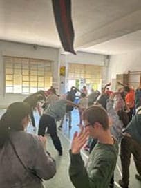 Fue además muy interesante la visita al colegio de educación especial Los Ángeles, de donde procedían estos chicos y chicas, donde pudimos comprobar la preocupación extrema que tiene el colegio por su alumnado, y como se sumaron al proyecto para más allá de su estancia en el centro que estos niños y niñas tuvieran un futuro. Nuestro grupo estuvo muy fusionado con los niños y los profesores del colegio. Durante la visita al centro se repitió parte del espectáculo ayudando al público (alumnado que no pudo ir al teatro) a una mayor comprensión e implicación. Los participantes en el encuentro mostraron solidaridad y empatía en un clima de verdadera amistad.