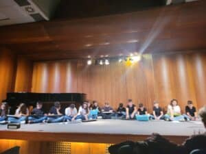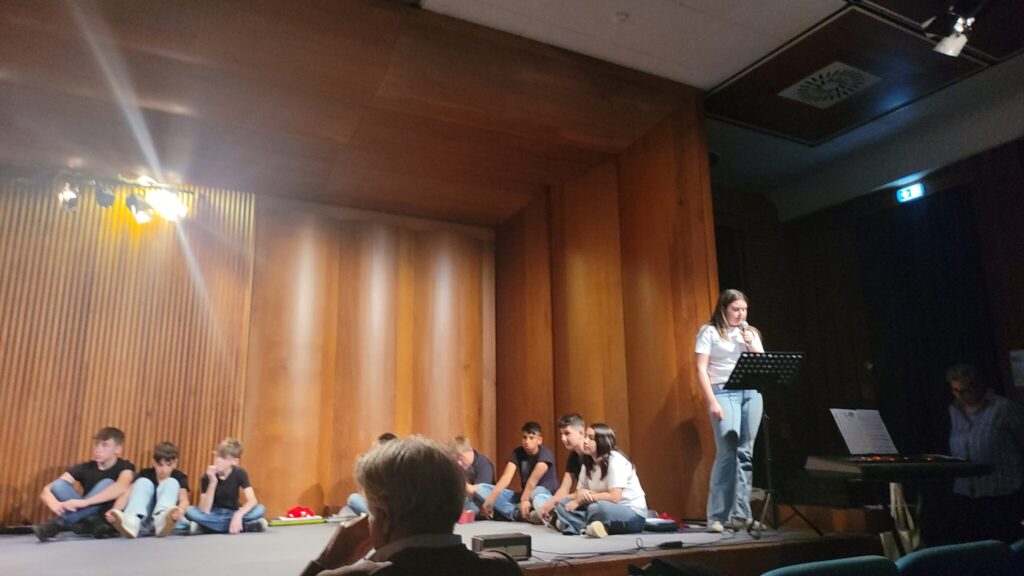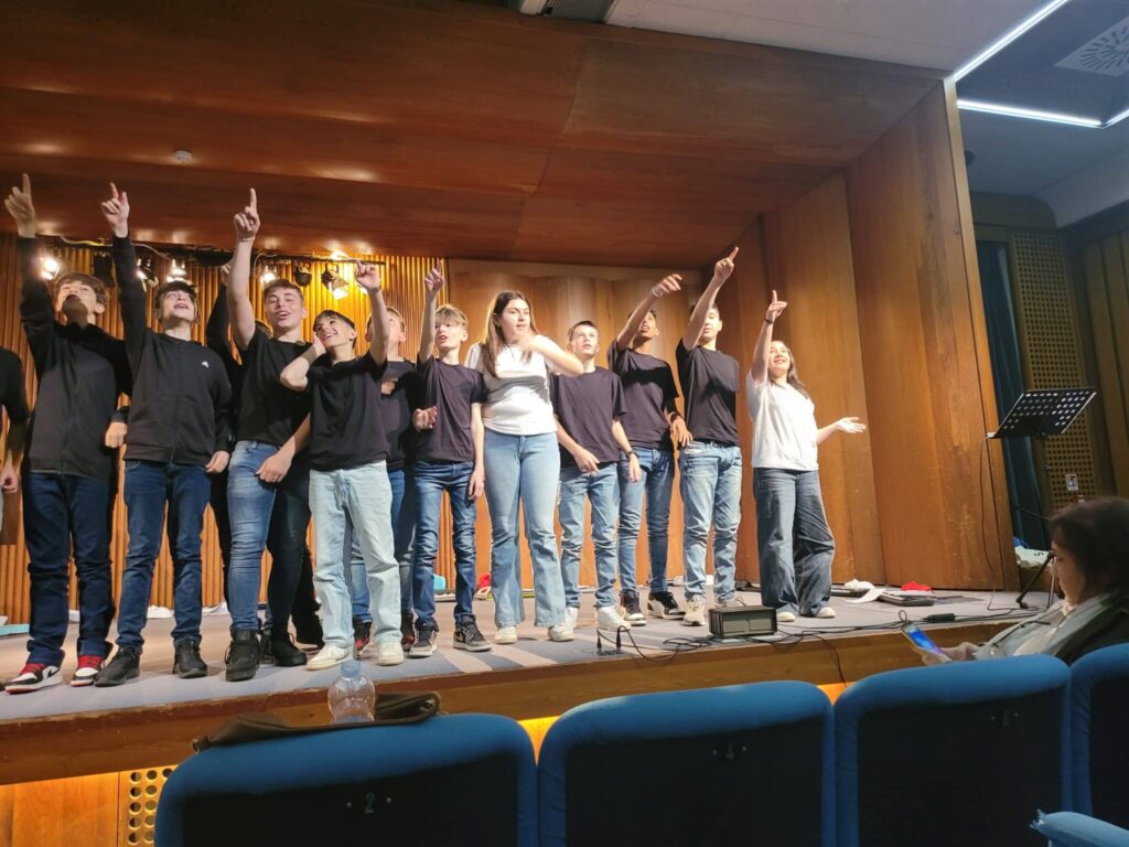 La rueda de prensa obtuvo un gran éxito, confirmando la plena implicación de la Administración Municipal (puesta a disposición gratuita del Auditorio / atención de la publicidad del evento / suministro gratuito de los instrumentos: piano de cola, equipo de sonido, sistema de vídeo…) también en la publicidad del espectáculo: la oficina de prensa del Ayuntamiento se encargó de difundir la información a todas las escuelas de la ciudad. Esto se debe a que en el espectáculo final (el tercero creado en Terni) involucramos, además de las clases de la escuela secundaria B. Brin, socio del proyecto, donde se activaron los talleres artísticos EMOCIONARTE, también una escuela secundaria de la ciudad, el ‘LICEUM Musical’, colegio de gran prestigio y cualificación que acompañó todas las fases del espectáculo con gran conocimiento artístico.