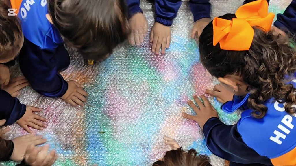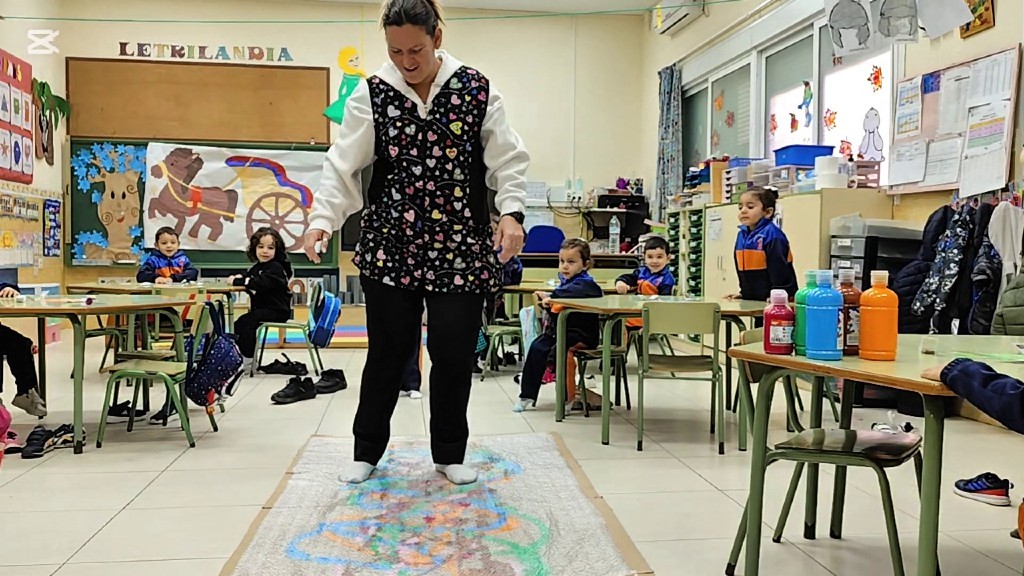 La sesión, que tuvo lugar en el CEIP Hipódromo de Melilla junto con la artista de música y teatro María Mansilla, se centró en una nueva forma de pintura no convencional, en la que los niños y niñas, utilizaron los pies como herramienta principal para crear.