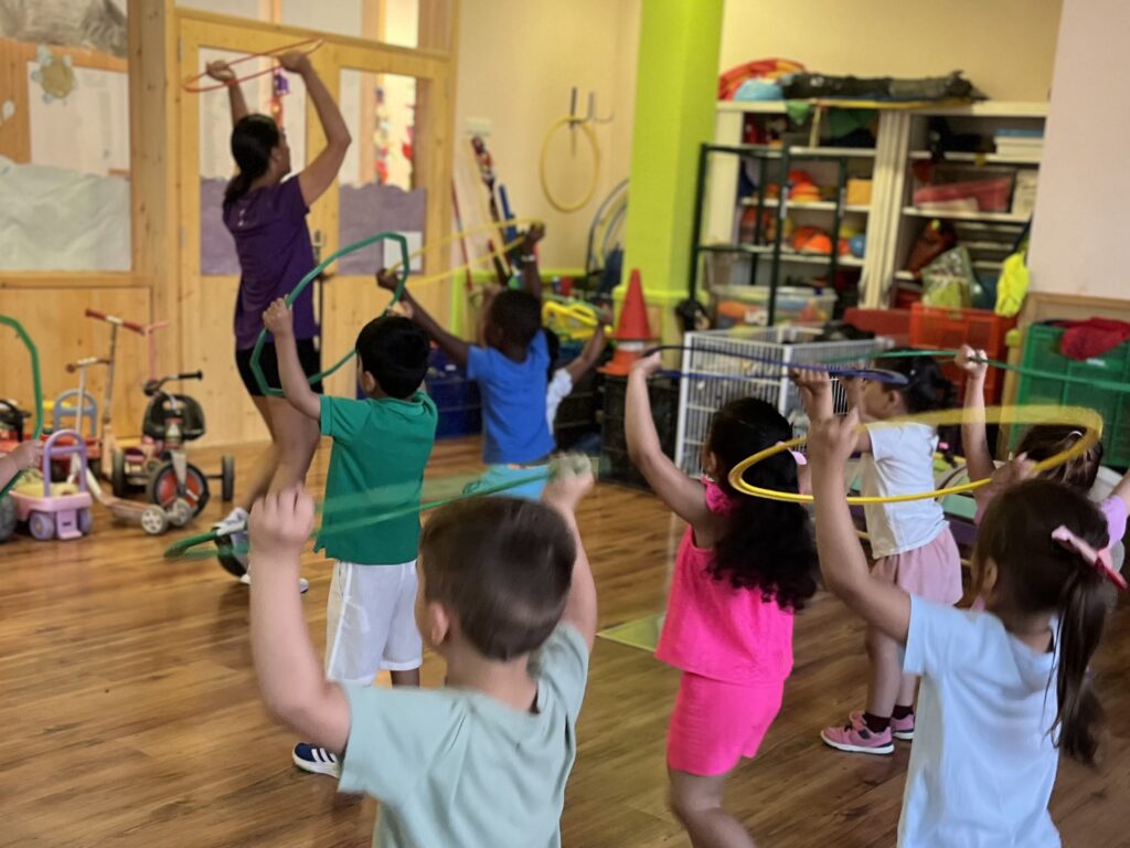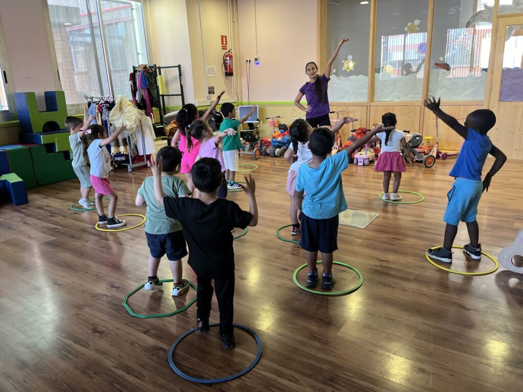 La artista de danza Olga Ponce ha vivido esta sesión con ellos y ellas y les ha guiado en todo momento. Durante este rato, se trabajó desde el movimiento hasta la expresión corporal a través de la danza y con aros como material principal. Se generaron espacios de interacción en los que niñas y niños exploraron dinámicas de coordinación, atención y trabajo conjunto.