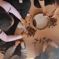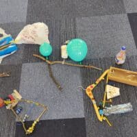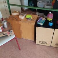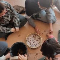 Flautas sikus con caña con pajitas de cartón, trompetas con embudos y caños, el sonido del agua en clepsidras con botellas de plástico y semillas, el sonido de un jardín con sus semillas, el silencio de la naturaleza mientras se recoge material… Mediante la imaginación, podemos crear sonidos y harmonía usando elementos corrientes.