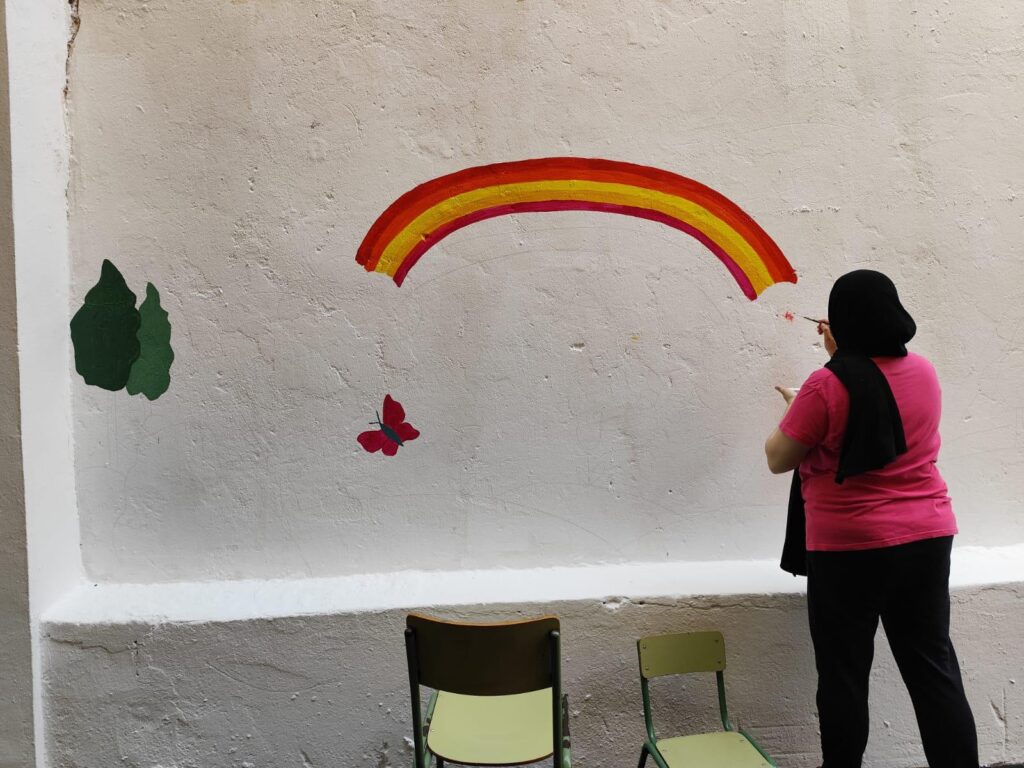 En los centros educativos de Ceuta, dentro del marco del proyecto ERG Next Generation España, hemos trabajado en la creación de espacios donde la comunidad educativa, especialmente las familias, participa activamente. Al involucrar a todos los miembros de la comunidad, reforzamos lo aprendido en las aulas y lo llevamos a la práctica. Como parte de este proyecto, involucramos a las familias y alumnos para crear, en el patio de sus centros, imágenes de un mundo diferente donde un arco iris de colores simboliza el respeto al medio ambiente. Esta acción no solo fortalece los lazos comunitarios, sino que también promueve una conciencia colectiva sobre la importancia de preservar nuestro entorno.