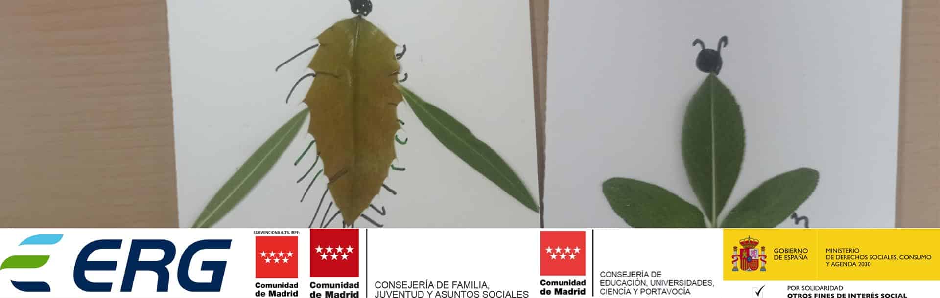 Mostramos a los menores diferentes tipos de hojas, hablando de su importancia en el medio ambiente y la necesidad de cuidarlo y preservarlo para tener un mundo mejor. pudieron tocarlas, olerlas, sentirlas, notar texturas, tamaños, pesos, para posteriormente realizar con ellas nuestra colección de Bichos, insectos, atendiendo al concepto de que en una colección de lo que sea, esas piezas raras, esas piezas únicas son las que le dan mayor a la propia colección. Una forma diferente de entender y relacionarse con la naturaleza como parte del proyecto ERG Next Generation España.
