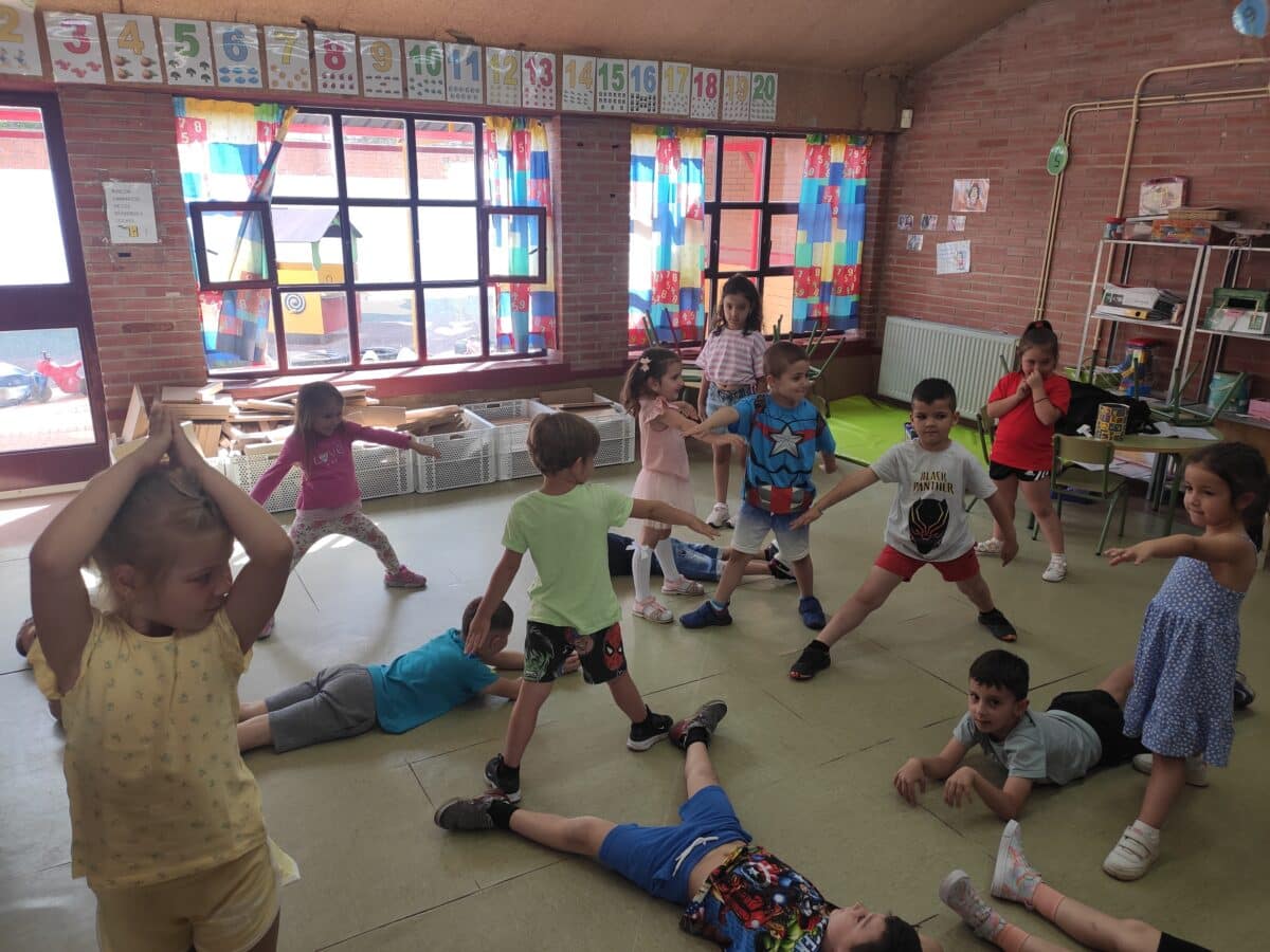El teatro de imagen y de diálogo con la coralidad también ha tenido su importancia durante las sesiones. El Teatro Imagen busca explorar y expresar emociones y sentimientos a través de imágenes visuales y gestos corporales en lugar de depender principalmente del diálogo hablado. Esto requiere una estrecha colaboración entre los alumnos que participan para poder crear un lenguaje visual coherente y significativo. Para ello, la expresión con sus cuerpos y emociones es fundamental para la creación de una imagen colectiva, en este caso profundizando en la problemática medioambiental pues uno de los objetivos del programa de este curso es la sensibilización del cambio climático, desarrollando estrategias que fomenten el desarrollo sostenible y medioambiental.