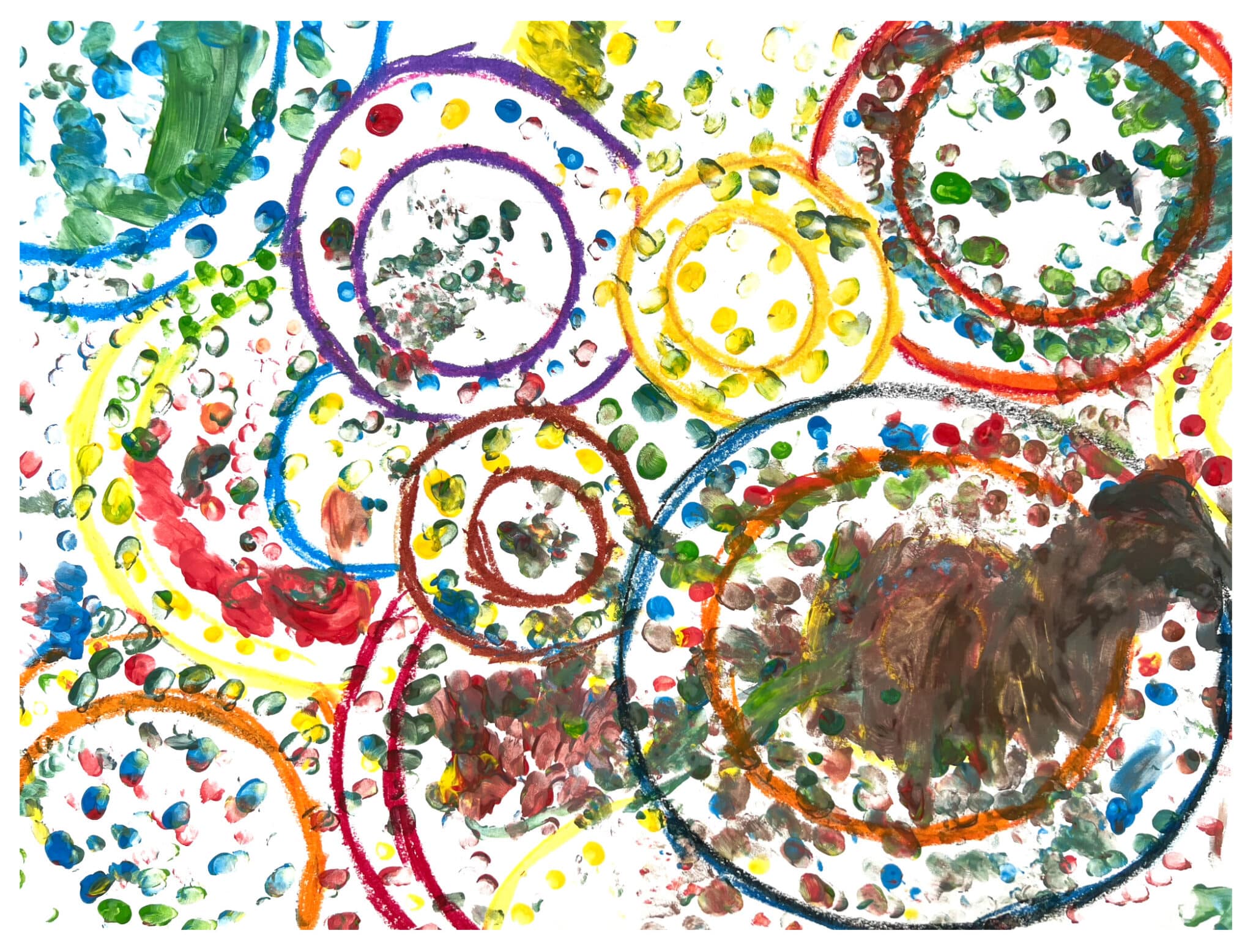 Siguiendo con el tema de Oceanía, los alumnos exploraron el arte aborigen australiano, rico en simbolismo y conexión a la tierra. Utilizando pintura de manos, los estudiantes crearon obras a partir de puntos y líneas, dejándose llevar por sus sentimientos en el momento. Esta actividad sencilla permitió a los niños disfrutar explorando su creatividad de manera táctil y sensorial, conectando con la naturaleza y expresando sus emociones libremente.