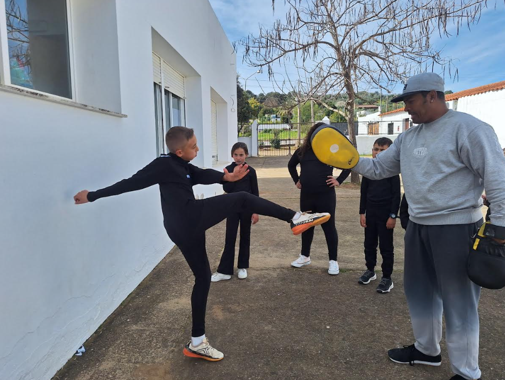 En el CRA La Raya de Badajoz el arte ha dado mucho de sí, y las fotos que nos enviaba el artista de capoeira Denilson Santana lo demuestran. En el centro el arte volvió a ser el foco de diversas acciones desarrolladas con niños y niñas. Las imágenes muestran diferentes lenguajes corporales, como la capoeira, el juego con objetos y la preparación escénica, integrando valores como la cooperación, el respeto y la comunicación.