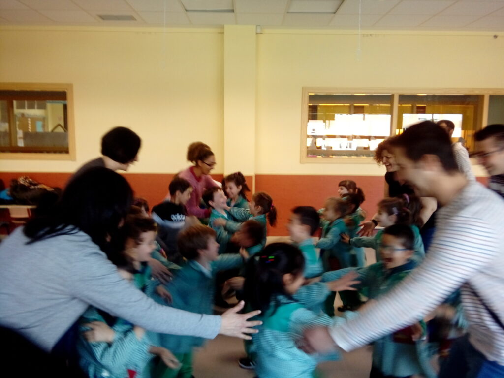 En el CEIP José de Echegaray, situado en Madrid, se ha llevado a cabo una sesión centrada en el trabajo desde el circo y en el entorno familiar. El artista de circo Javier García, nos comentaba que durante la jornada, niñas y niños compartieron el espacio con madres y padres en una propuesta conjunta que unió el juego, el arte y la cooperación.