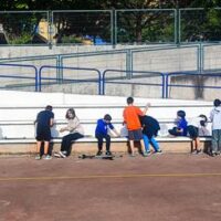 A lo largo de este curso, el centro escolar al completo, no solo el alumnado y los docentes sino también las familias y el personal de servicios, limpieza y cocina, se han unido y han participado en la tarea de la rehabilitación de las gradas del patio, siendo el motivo elegido el pintor muralista Keith Haring.