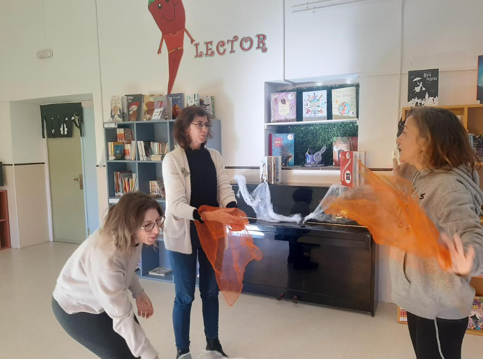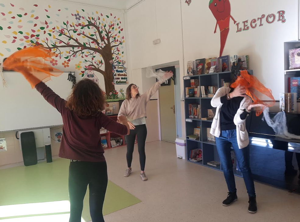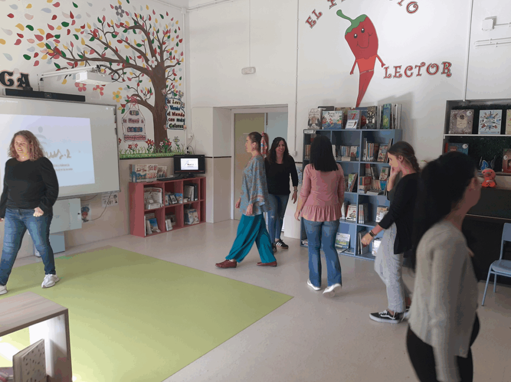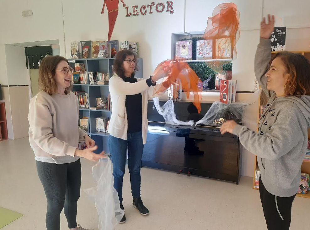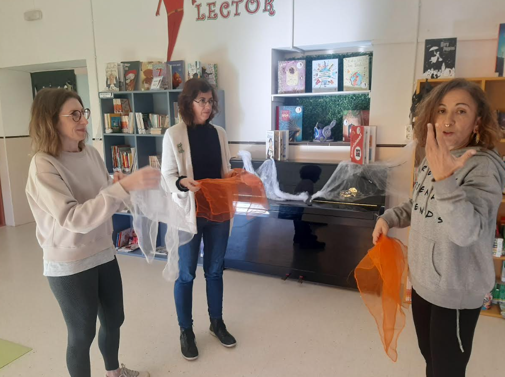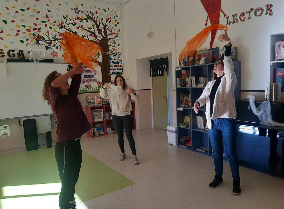 La sesión, dirigida a todo el claustro y a las familias, permitió que estos exploraran dinámicas plásticas centradas en la experimentación, el uso de materiales y la reflexión sobre el propio proceso creativo. La artista propuso actividades sencillas y versátiles para trasladar al aula, poniendo el foco en la importancia de trabajar desde la observación, el juego y la expresión corporal y plástica.