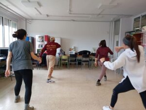 En otro momento de la sesión, se trabajó la responsabilidad emocional mediante la observación y el uso de gestos. Esta práctica, compartida entre compañeras y compañeros, permite tomar conciencia de las emociones propias y de las ajenas. El cuerpo se convierte así en herramienta de comunicación y comprensión, facilitando la expresión sin necesidad de la palabra, y reforzando valores como el respeto y la empatía.