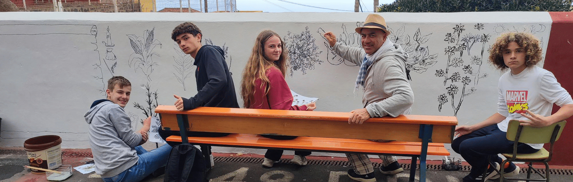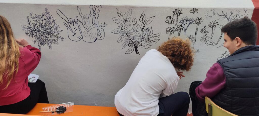 Además, Alicia, maestra del centro, ha preparado un cartel con más historias mágicas recopiladas, y Salvatore, en su rol de artista MUS-E de artes plásticas, ha liderado la tarea de plasmarlas en el centro, permitiendo que las familias participen en su realización.