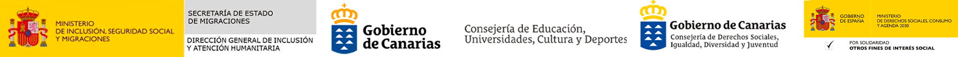 Esto ha sido posible gracias al Ministerio de Inclusión, Seguridad Social y Migraciones, a la Consejería de Educación y Universidades del Gobierno de Canarias y la Consejería de Derechos Sociales, Igualdad, Diversidad y Juventud del Gobierno de Canarias. Además, también ha participado y colaborado el Ministerio de Derechos Sociales, Consumo y Agenda 2030 a través de su convocatoria del 0,7%.