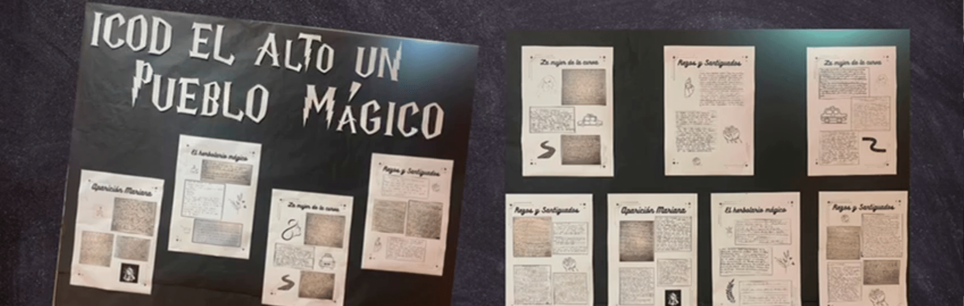 El video destaca los carteles con «historias mágicas de su pueblo», creados por los estudiantes y las familias. Estos carteles, con textos y dibujos que explican o cuentan estas historias, se han plasmado en un mural gracias al trabajo colaborativo entre el artista y las familias.