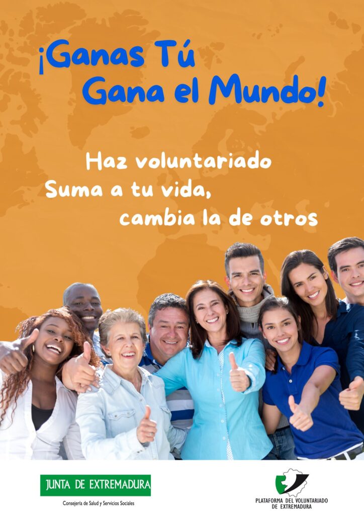 LA PLATAFORMA DEL VOLUNTARIADO DE EXTREMADURA PONE EN MARCHA LA CAMPAÑA #GanasTúGanaElMundo PARA SENSIBILIZAR SOBRE LOS BENEFICIOS DE HACER VOLUNTARIADO.