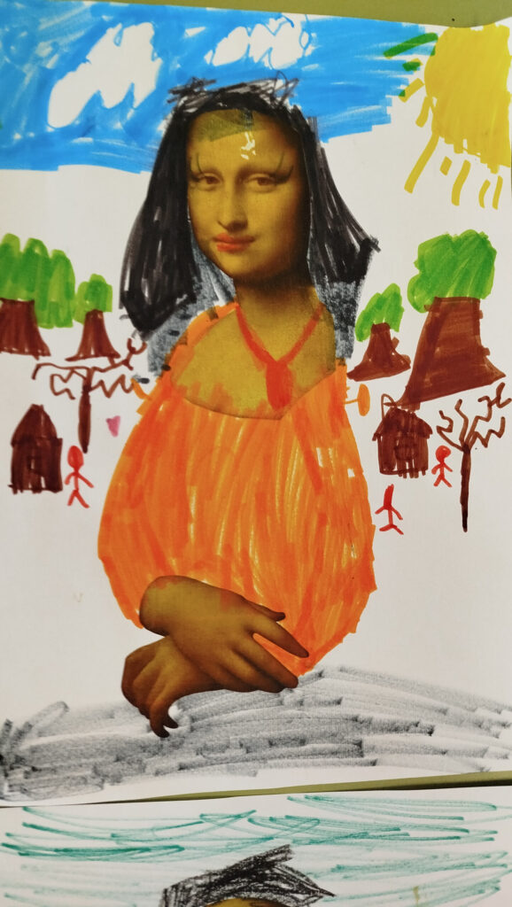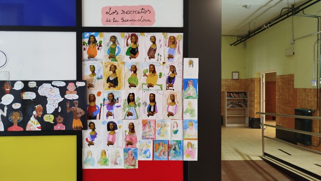 Ese vínculo especial entre la persona y la obra de arte —lo que en el ámbito cultural se denomina apropiación artística— permite que cada quien haga suya la pieza, que se identifique con ella, que la reinterprete sin desvirtuarla. Y esa ha sido precisamente una de las claves del trabajo desarrollado por la artista Marta Pintos en el CEIP Gesta de Asturias con el alumnado de 1º de primaria. A través del programa MUS-E, los niños y niñas han tenido la oportunidad de «visitar» el Museo del Louvre sin salir del aula y establecer su propio diálogo con una de las obras más famosas del mundo. En palabras de Marta: