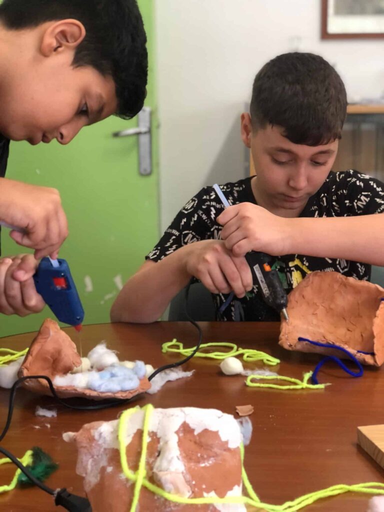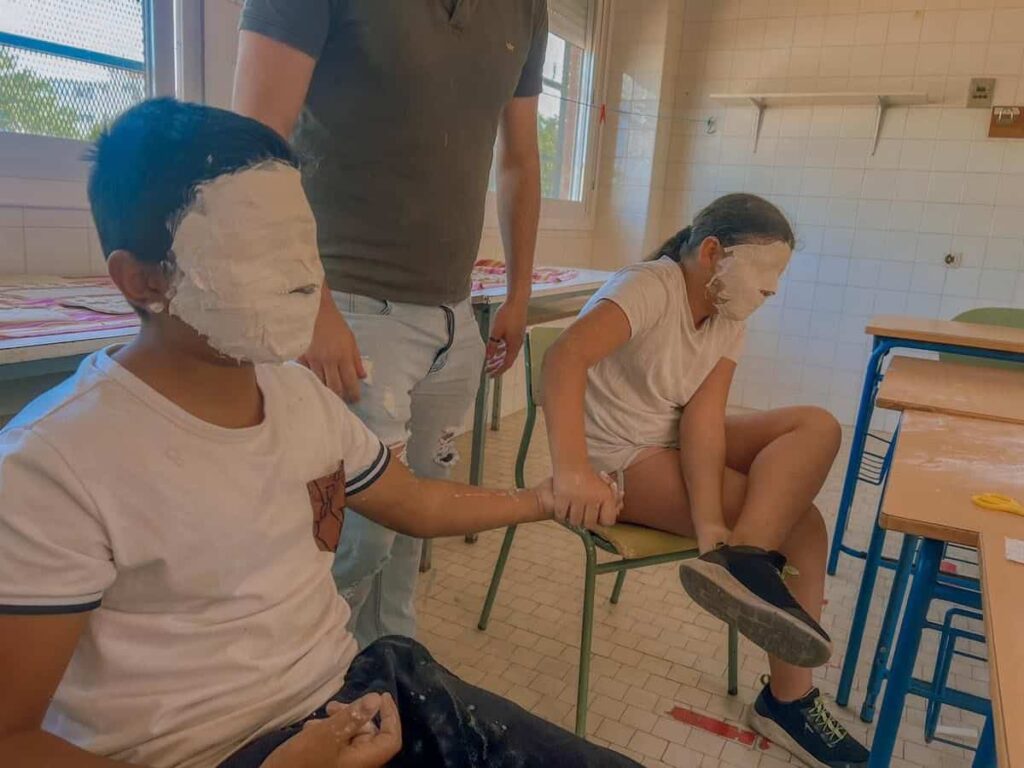 En el CEIP Albolafia de Andalucía, el programa MUS-E ha trabajado las emociones y su gestión desde el arte, en concreto, desde las artes plásticas de la mano de Azahara Velasco. A través de la creación de moldes de escayola y arcilla, los alumnos han trabajado en esculturas que simbolizan la dureza exterior que muchas veces mostramos, en contraste con los sentimientos más suaves y vulnerables que guardamos en nuestro interior. Este proyecto busca desarrollar la inteligencia emocional de los estudiantes, usando el arte como metáfora de las corazas que construimos y la necesidad de explorar y expresar nuestras emociones genuinas como nos cuenta la propia Azahara: