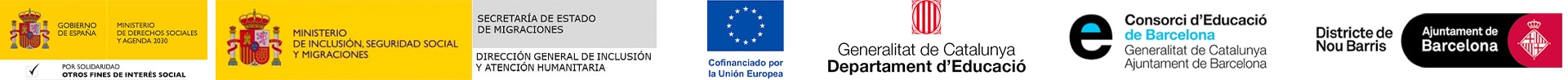 El Programa en Cataluña es posible gracias a la colaboración con el Ministerio de Inclusión, Seguridad Social y Migraciones, el Departament de Educació de la Generalitat de Catalunya y el Consorci d’Educació de Barcelona y el distrito de Nou Barris del Ayuntamiento de Barcelona. Además ha participado también el Ministerio de Derechos Sociales y Agenda 2030 a través de su convocatoria del 0,7%.