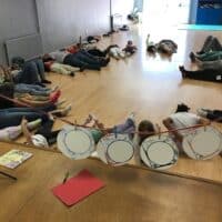 Todavía en el último día hemos invitado a los dos grupos de cuarto, que no tienen MUS-E, a participar en las sesiones con los alumnos de primero. Ha sido muy interesante hacer demostraciones para trabajar la capacidad de análisis y observación crítica positiva.