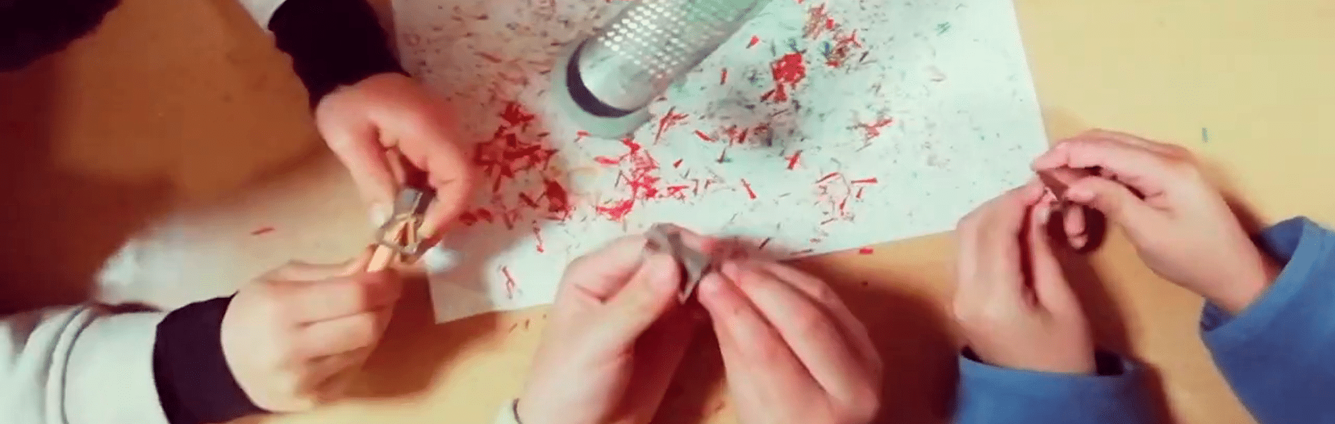 «Hemos creado nuestros propios planetas derritiendo ceras sobre un folio para, posteriormente, con tapas redondas de diferentes tamaños poder hacer los círculos y recortarlos», comenta Ramiro. «Luego hemos hablado de cómo nos gustaría que fuera nuestro planeta: limpio, sin guerras, con gente buena que ayuda, con parques de atracciones, con cosas gratis… Al final le pusimos nombre a nuestro planeta y los pegamos sobre una cartulina, decorando así la entrada del centro, dando valor a la diversidad y hablando sobre el cuidado del planeta».