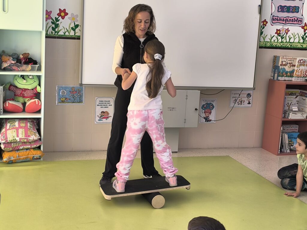 Estas dinámicas han puesto el acento en la atención, la coordinación y la relación con el otro y la otra. El uso de pañuelos, rulos y tablas ha servido como punto de partida para experimentar sensaciones de equilibrio y confianza, siempre desde el juego compartido. La imitación y la observación han sido claves para reforzar la empatía y el respeto mutuo, elementos presentes de forma constante en las sesiones.