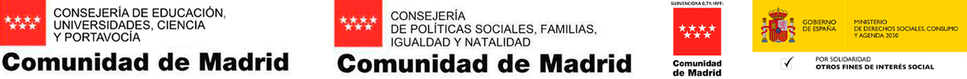 Esta sesión han sido posible gracias a la Consejería de Educación, Universidades, Ciencia y Portavocía de la Comunidad de Madrid, la Consejería de Políticas Sociales, Familias, Igualdad y Natalidad de la Comunidad de Madrid y a la participación del Ministerio de Derechos Sociales, Consumo y Agenda 2030 a través de su convocatoria del 0,7%.
