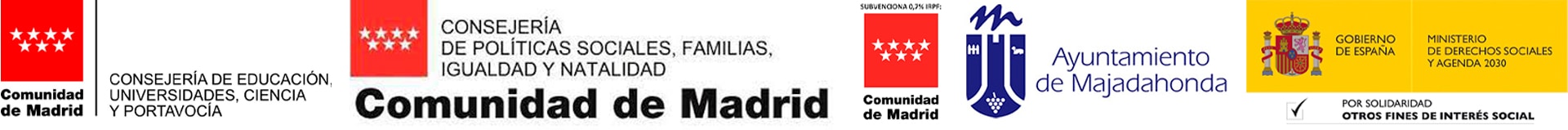 Esto ha sido posible gracias a la Consejería de Educación, Universidades, Ciencia y Portavocía de la Comunidad de Madrid, a la Consejería de Políticas Sociales, Familias, Igualdad y Natalidad de la Comunidad de Madrid, a la Subvención del 0.7% de la Comunidad de Madrid, al Ayuntamiento de Majadahonda y a la participación del Ministerio de Derechos Sociales y Agenda 2030 a través de su convocatoria del 0,7%.