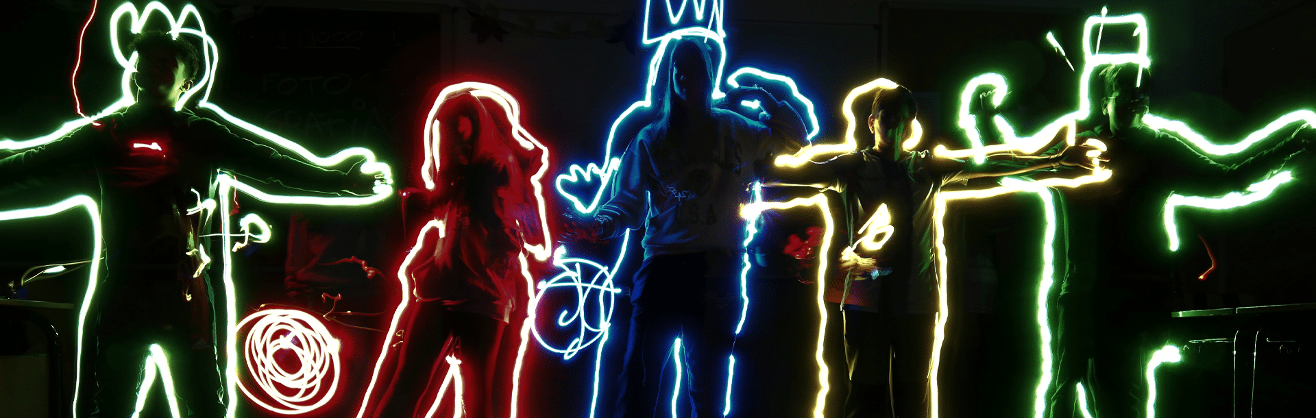 Tras estas reflexiones y usando los teléfonos de los propios alumnos, han creado varias imágenes pintando en el espacio con las linternas del teléfono y retratando dichos dibujos por medio de fotografías de larga exposición.