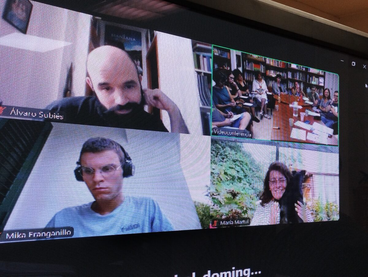 Por ello, el pasado 8 de septiembre tuvo lugar en la sede de la Fundación una reunión presencial y on-line con todo el equipo de formadores y formadoras, tanto quienes ya venían trabajando en CODI-Arte desde sus inicios como quienes se han sumado recientemente, gracias al notable crecimiento del programa. Durante el encuentro se evaluaron las acciones realizadas hasta la fecha y se compartieron aportaciones tanto desde la experiencia en el aula como desde la especialidad artística de cada profesional. La conexión entre las disciplinas artísticas y los contenidos del programa CODI —como el uso responsable de las tecnologías, la búsqueda de información fiable, la identidad digital, la prevención del ciberacoso o las adicciones digitales— volvió a demostrarse como un enfoque eficaz y motivador.