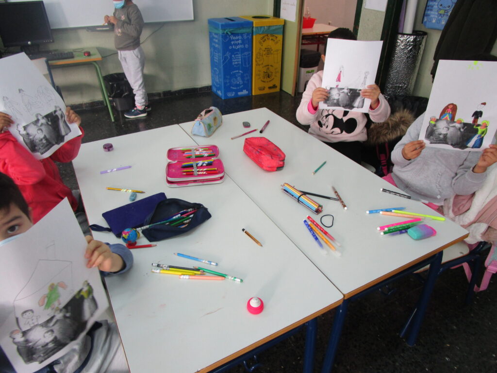 En este punto del proceso, empezamos a interactuar con los chicos y chicas, buscando que se familiaricen con el patrimonio dibujando y recreando lo que sienten que es y lo que hay. A partir de ahí, empezamos creando un jardín y observando cómo, desde esa primera experiencia, puede haberse diseñado otros jardines, los jardines reales, y del mismo modo, cómo entendemos nuestro patrimonio cultural, cómo se vivía antes y cómo se vive ahora.