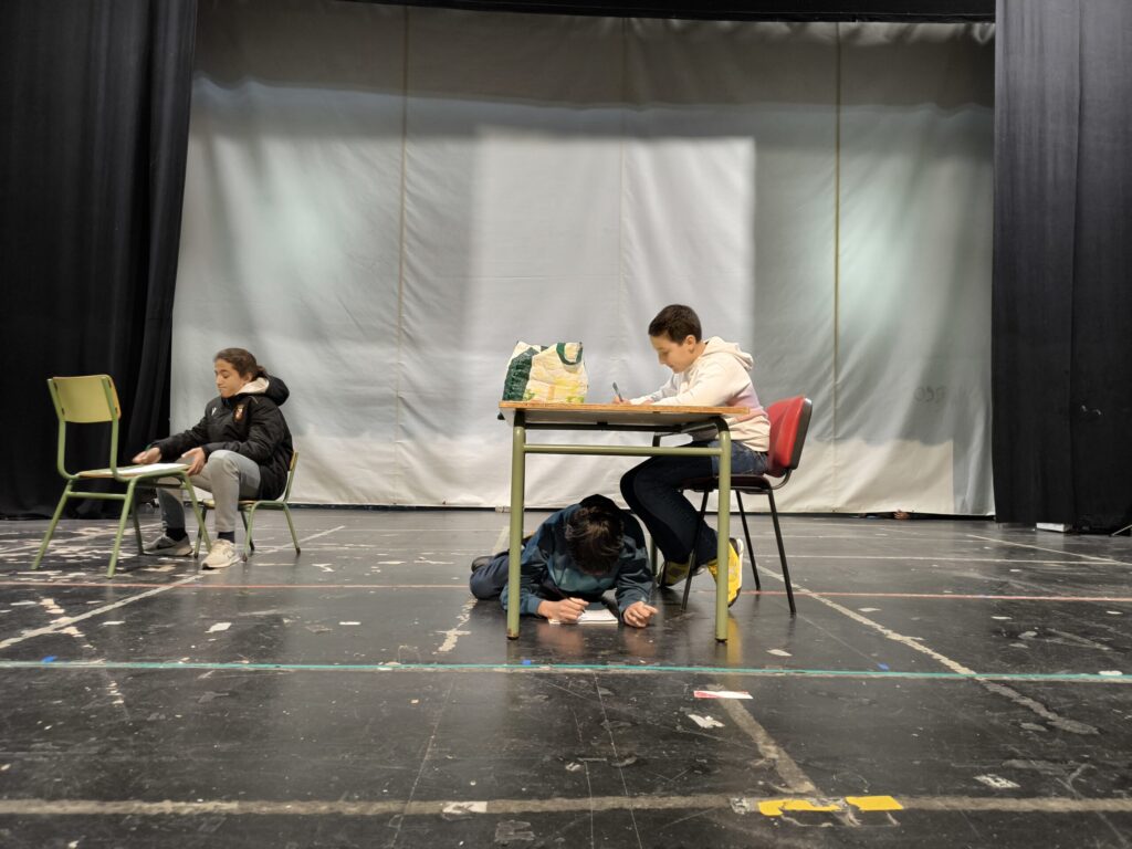 Para ellos, se les ha pedido que elijan un lugar en el teatro (el lugar del instituto donde realizamos nuestras sesiones), donde se sientan cómodos y tranquilos, para reflexionar sin que nadie les moleste. Se han colocado en el escenario, en bambalinas, en las butacas, pasillos… Ahora cada uno de esos lugares tiene un significado especial para ellos.