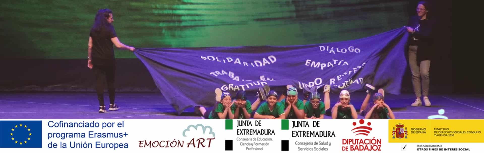 EmocionArte es posible gracias a la colaboración del Programa Erasmus+ de la Unión Europea y a la Consejería de Educación, Ciencia y Formación Profesional de la Junta de Extremadura, la Diputación de Badajoz y el Ministerio de Derechos Sociales Consumo y Agenda 2030