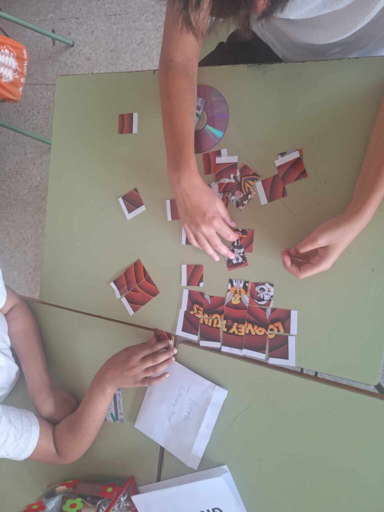 Con el puzzle en el aula hemos podido apreciar la emoción y el entusiasmo de los niñ@s mientras participan en una jornada temática dedicada al cine.